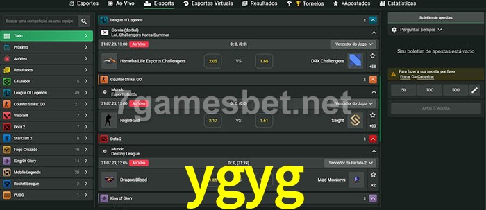 O ygyg oferece uma grande seleção de opções de apostas em e-sports com probabilidades competitivas